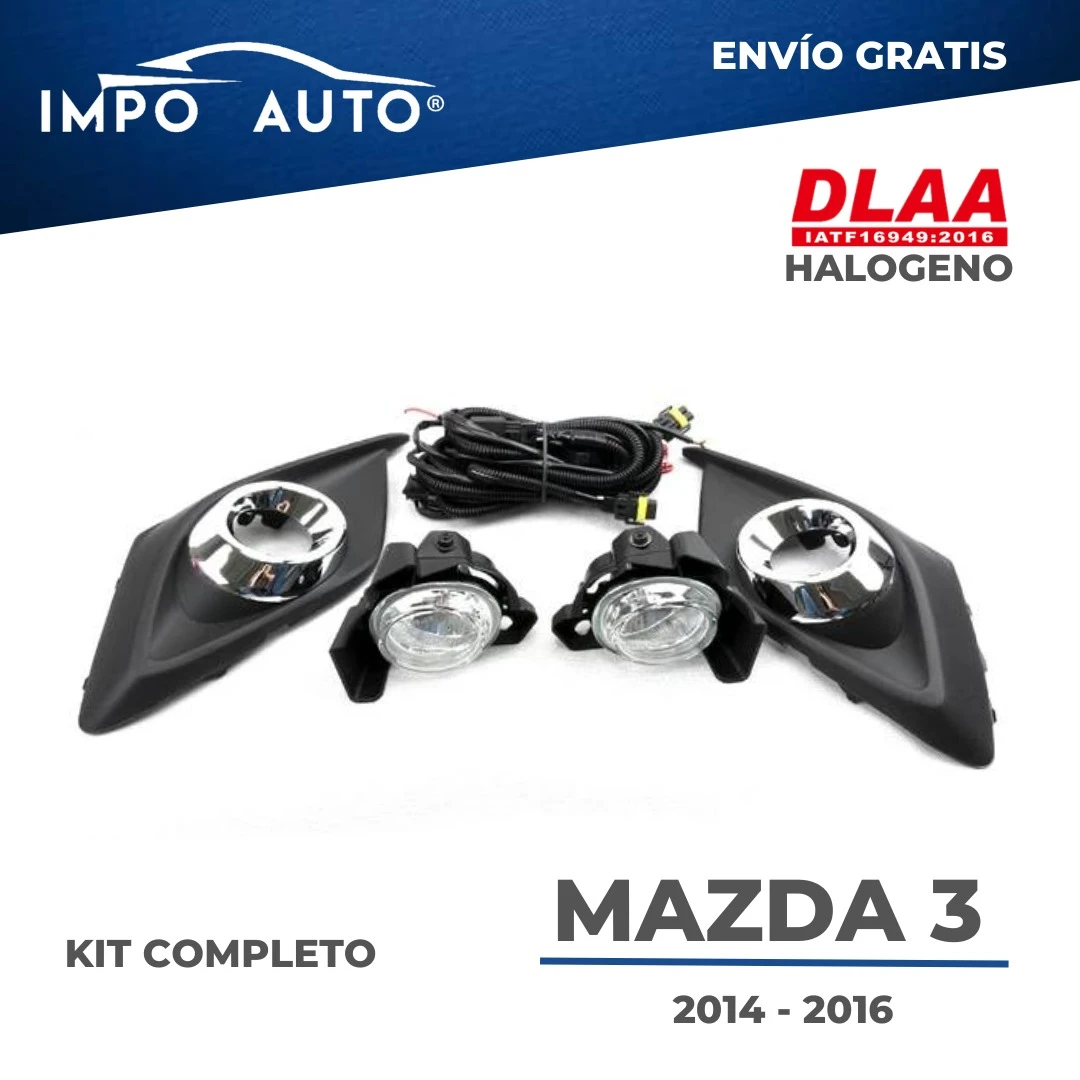 Iluminación antiniebla halógena tipo OEM con ajuste perfecto para Mazda 3 modelos 2014 a 2016. Mejoran la visibilidad en lluvia y neblina, con diseño resistente y fácil instalación.
